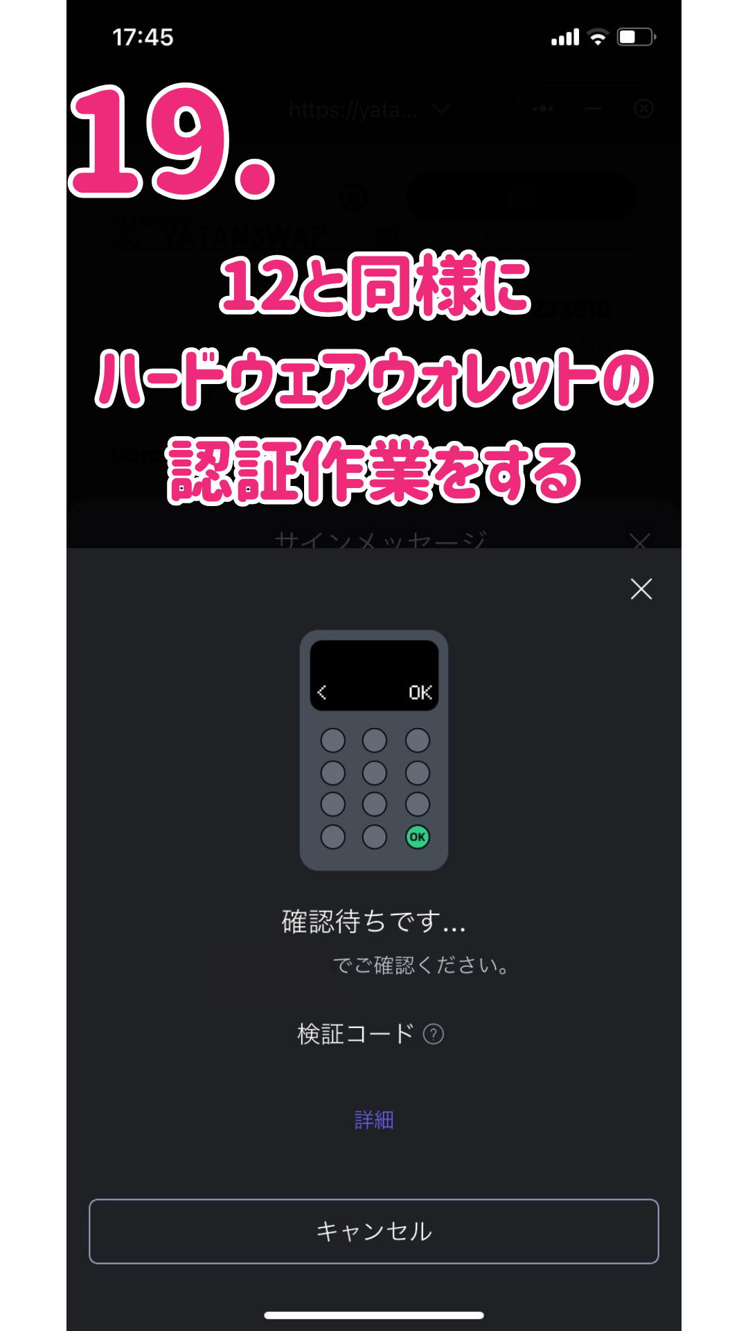 19.12.と同様にハードウェアウォレットの方は認証作業をして下さい。