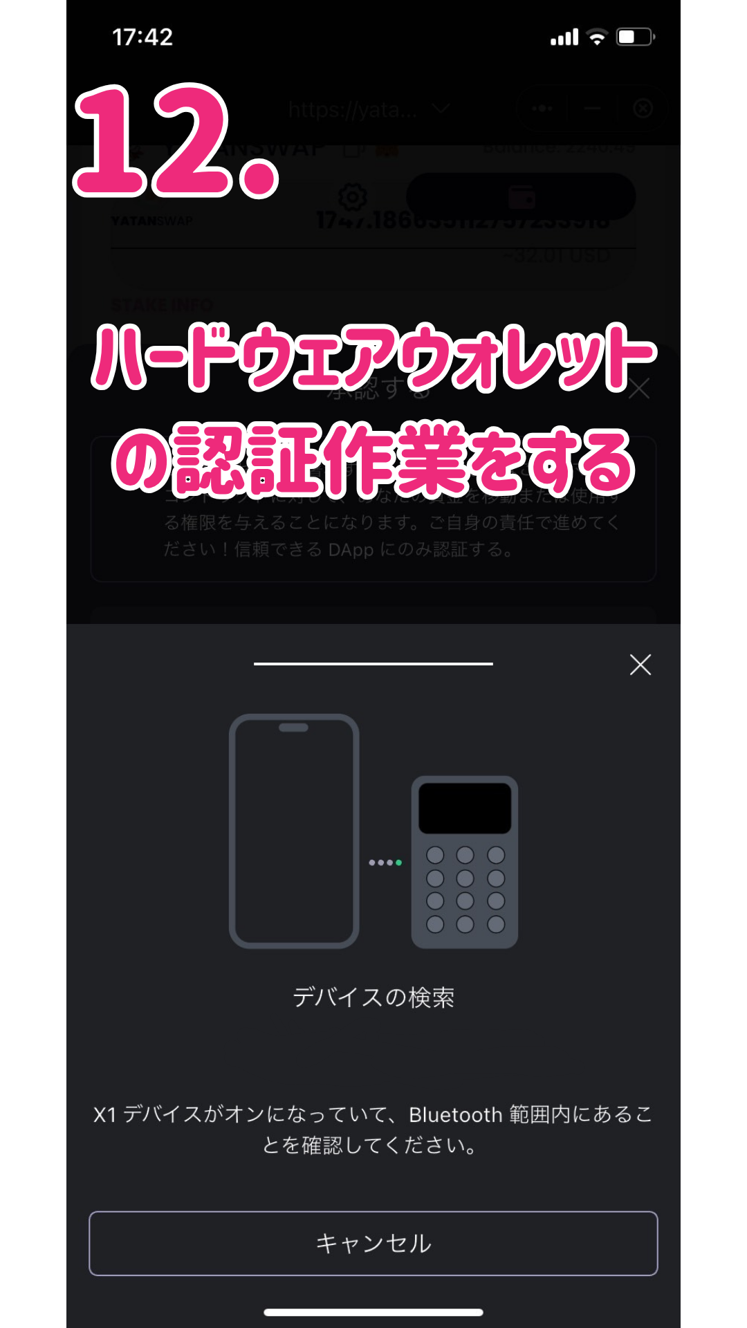 ハードウェアウォレットを使っている方はこちらでも認証作業をして下さい。