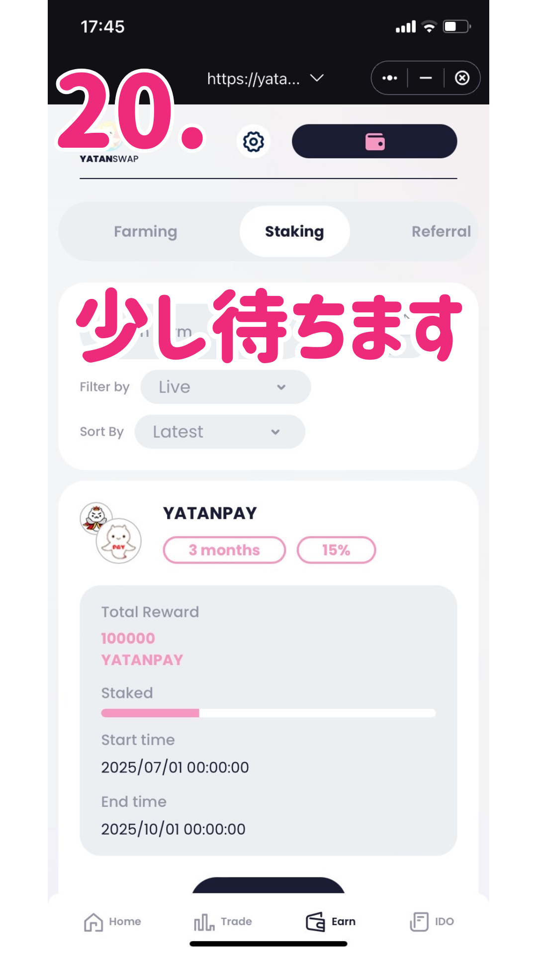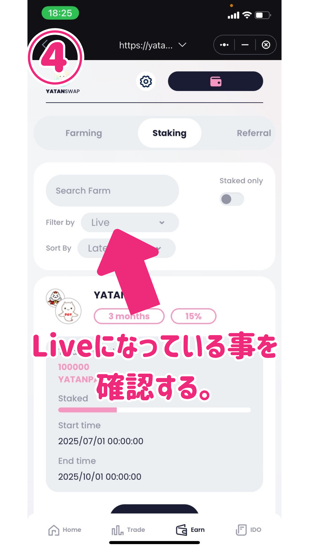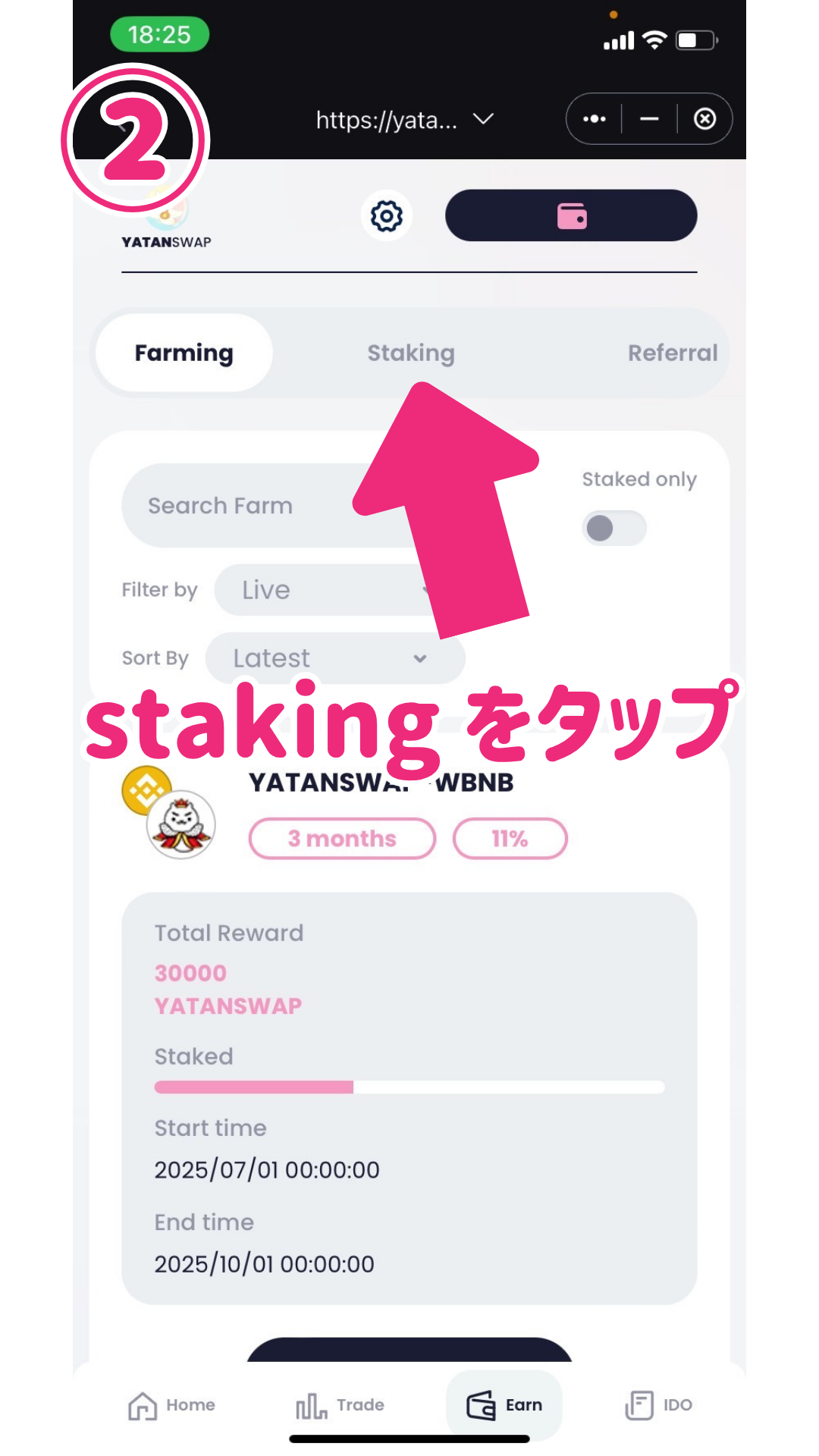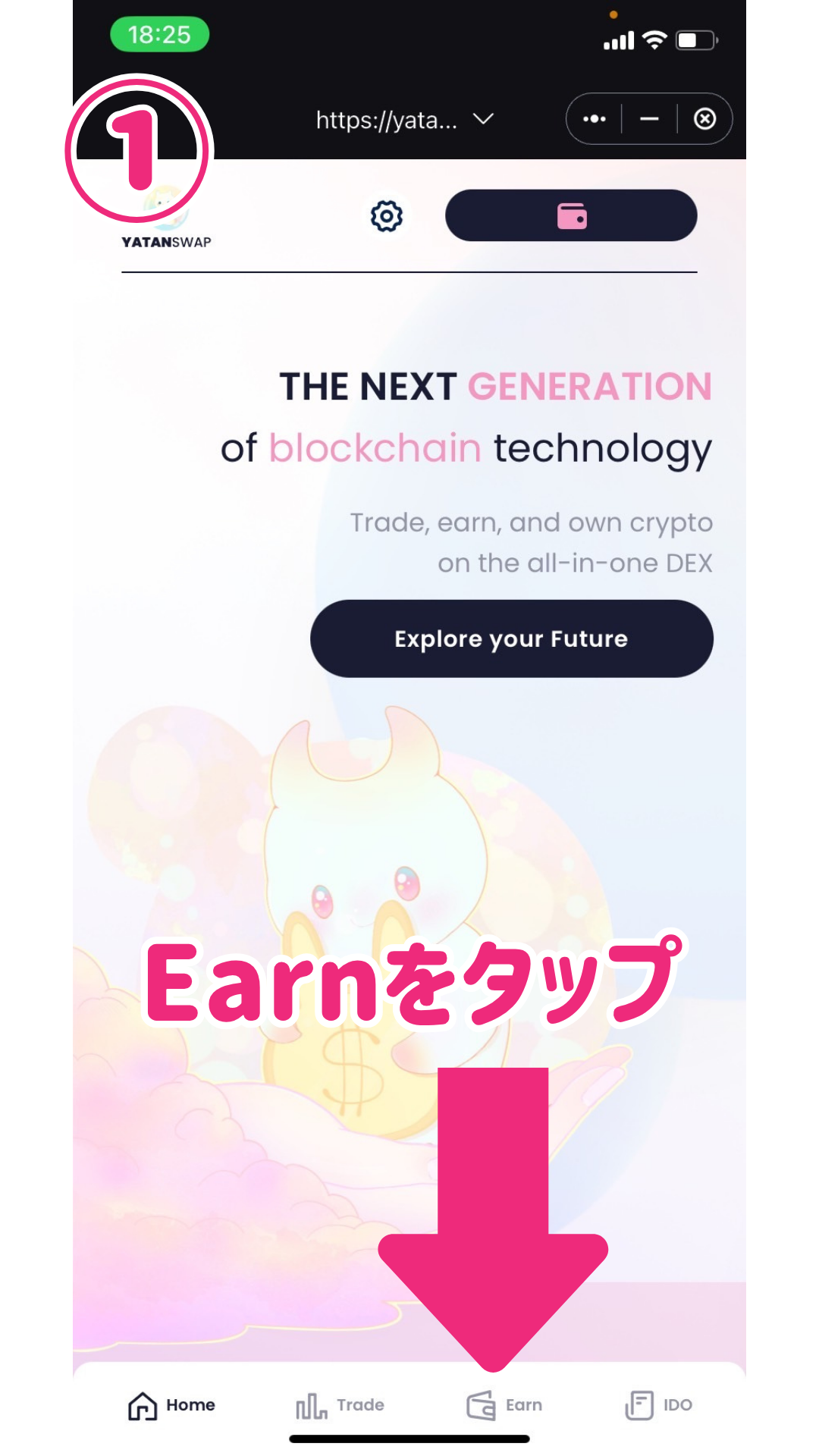 YATANSWAPでのステーキングの仕方について説明していきます‼️YATANSWAPのトップページから説明していきます🍀