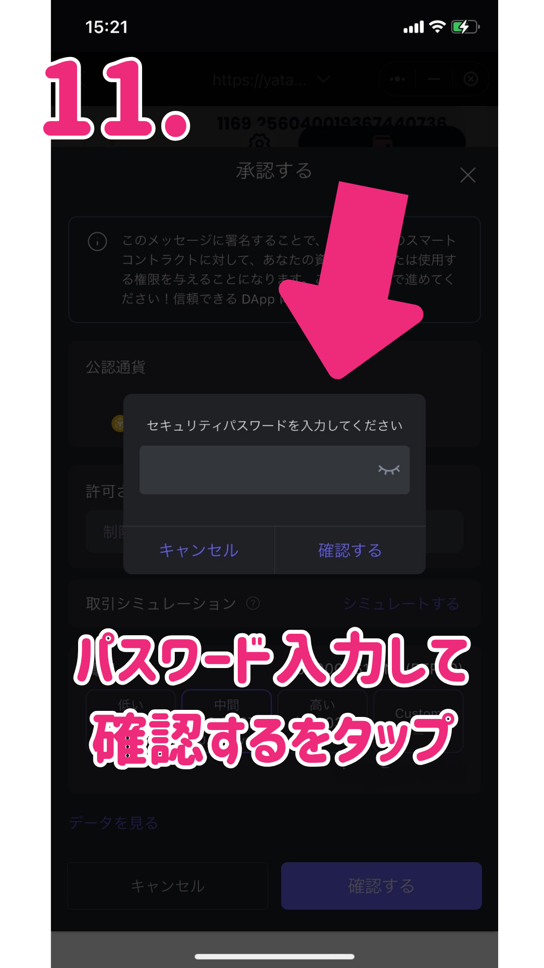 11 .次に認証作業をします。パスワードを入力して確認するをタップして下さい。