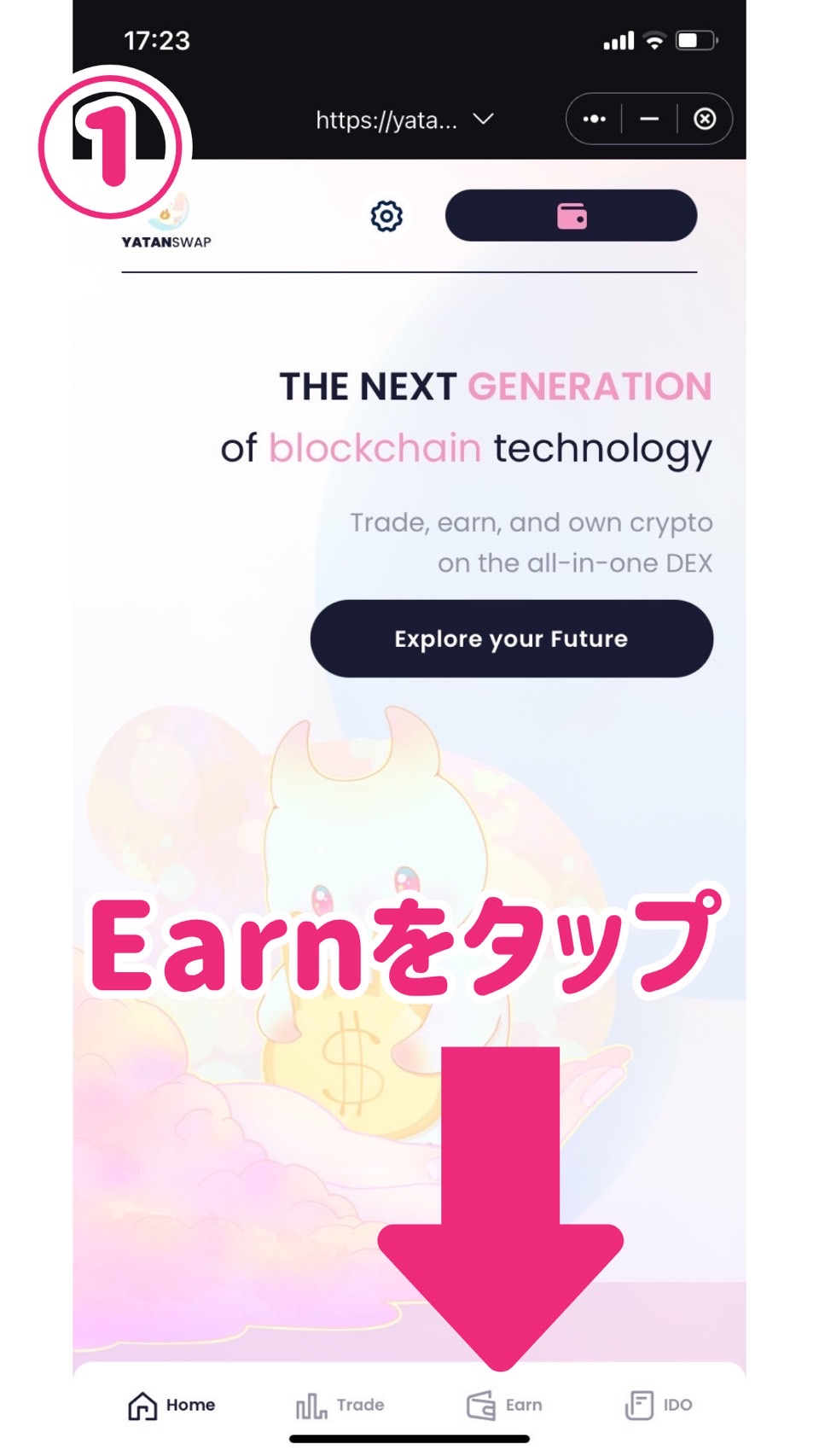 ①Earnをタップします。