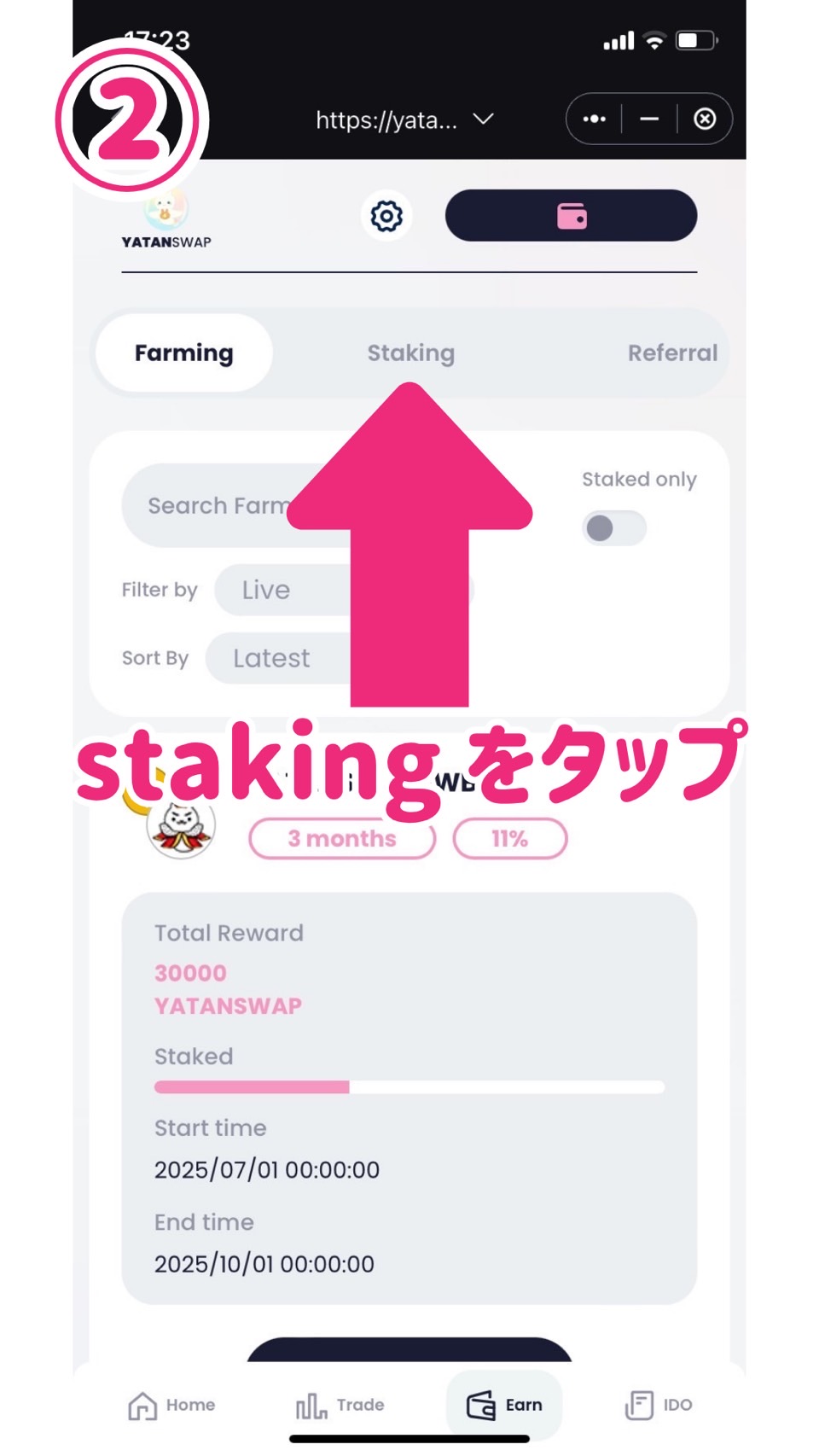 ②stakingをタップします。