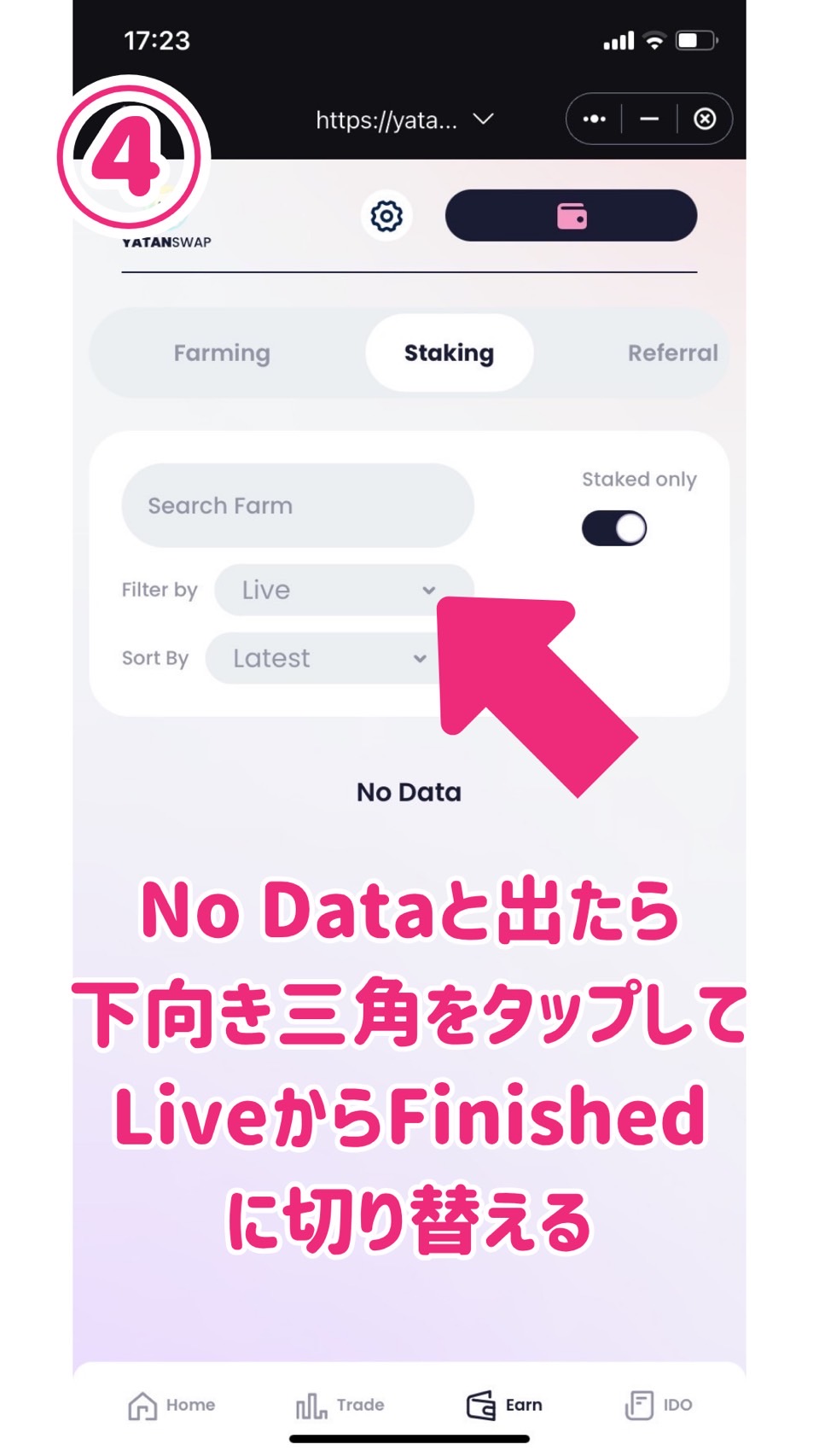 ④この時、下に自分のステーキングしているデータが出て来たら④の操作はせずに⑤の工程に飛んで下さい。