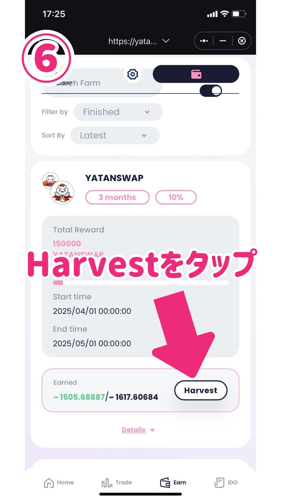 ⑥Harvestをタップします。