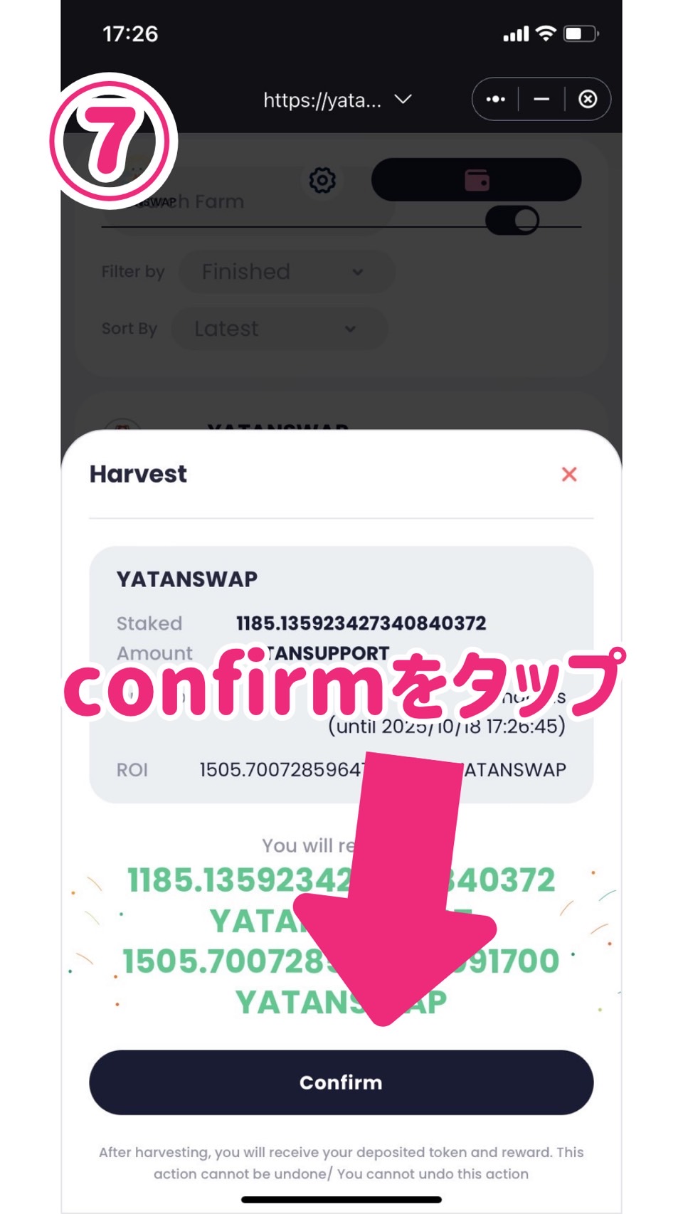 ⑦confirmをタップします。