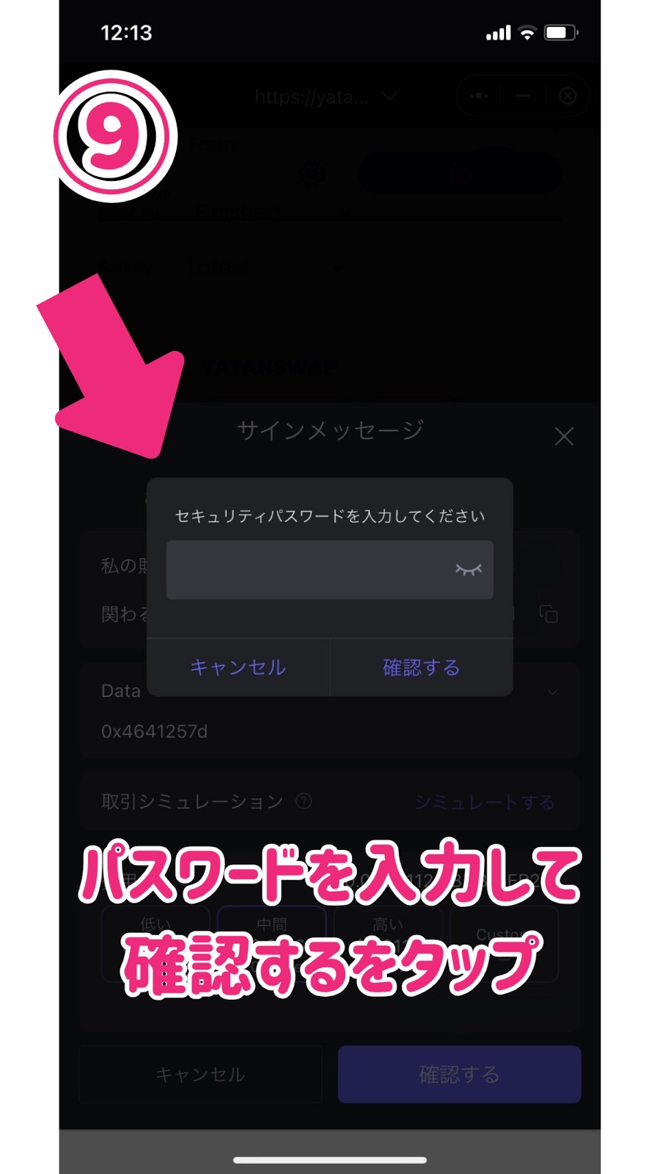 ⑨次に認証作業をします。パスワードを入力して確認するをタップして下さい。
