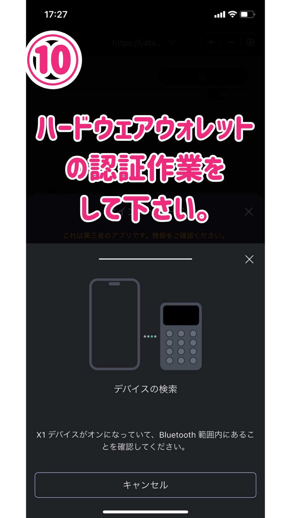 ハードウェアウォレットを使っている方はこちらでも認証作業をして下さい。