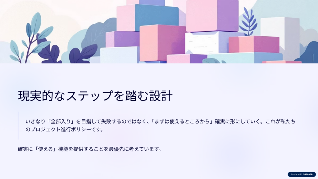 「すぐ完成」ではなく、「ちゃんと信頼できるものを作る」。